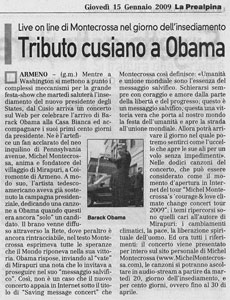 ARMENO – (g.m.) As Washington activates the complex mechanism of the big Fest-Show welcoming the Inauguration Day of the new President of the United States, an Internet-Concert is released from the Cusio-Region in Italy to celebrate the arrival of Barack Obama in the White House and to accompany the first hundred days of his presidency.